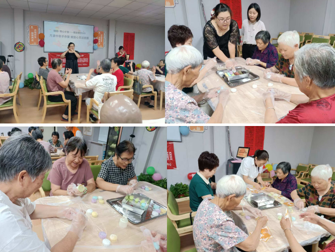 最受期待的做月饼环节终于登场。志愿者早已备齐面团、馅料、模具等材料,在社工与物业工作人员的耐心指导下,老人们兴致勃勃地投入创作:揉面团、包馅料、压模具,一个个形态饱满、满含心意的月饼渐渐成型。大家一边制作,一边拉家常,分享着动手的乐趣与对中秋的期盼,整个养老服务中心充满欢声笑语。