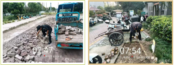 小区大部分支干道塑格材料因使用年限久,出现开裂、脱落现象,不仅影响小区美观,更给老人、小孩出行带来安全隐患。服务处经常会接到住户关于路面破损的抱怨。这问题服务处看在眼里,记在心里,结合小区商铺改造之际,拟回收废弃红砖进行路面翻新——既减少建筑垃圾污染,又大大降低改造成本,实现环保与实用双赢。